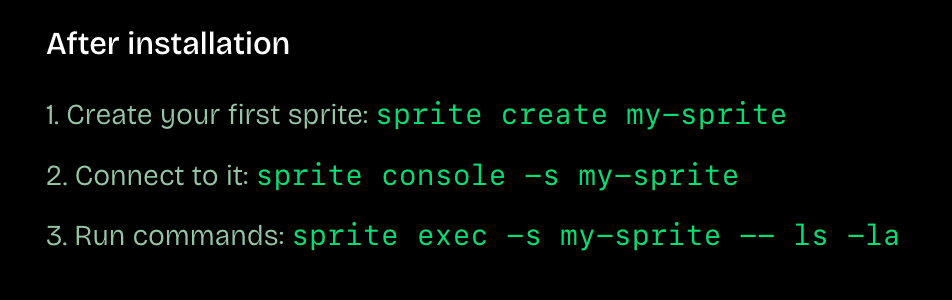 Yesterday I read Code and Let Live, an article covering fly.io's new(ish) Sprites offering. Sprites (sprites.dev) offers persistent VMs that feel like ephemeral VMs—offering ~1s latency to fresh shells, state snapshotting, and a CLI that makes remote code execution a breeze. I created an account, received an API token, installed the Sprites CLI, then ran the example quick-start commands: