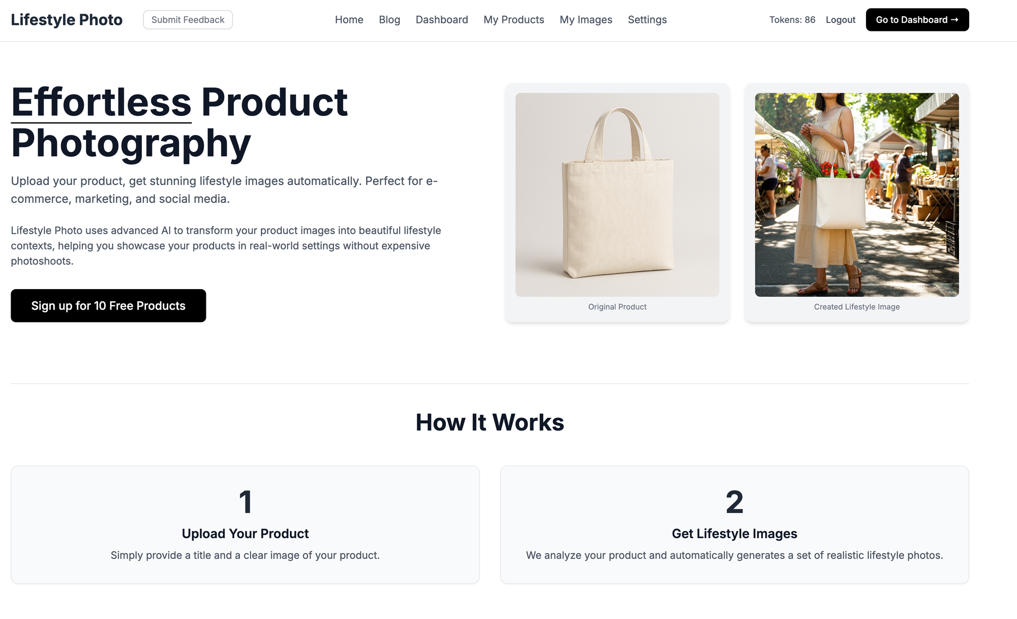 I often generate AI images using Gemini in AI Studio. This is inconvenient because it only generates one image at a time and I have to write the prompts myself. Very slow. If I am a Shopify / eBay / Etsy / Amazon merchant, I want to get a bunch of candidate AI images, take the best ones, and move on. This is what lifestyle.photo does.