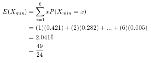 Using this calculation, we can predict that expected minimum roll will fall somewhere between 2.0333 and 2.0477.