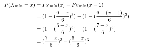 Since we are working in a discrete context we can calculate the PDF for Xmin using the following equation: