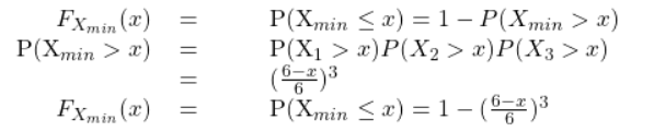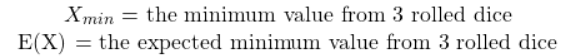 We are looking for the expected minimum from rolling 3 dice. So we have: